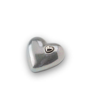 Small Ceramic Silver Heart Urn For Ashes